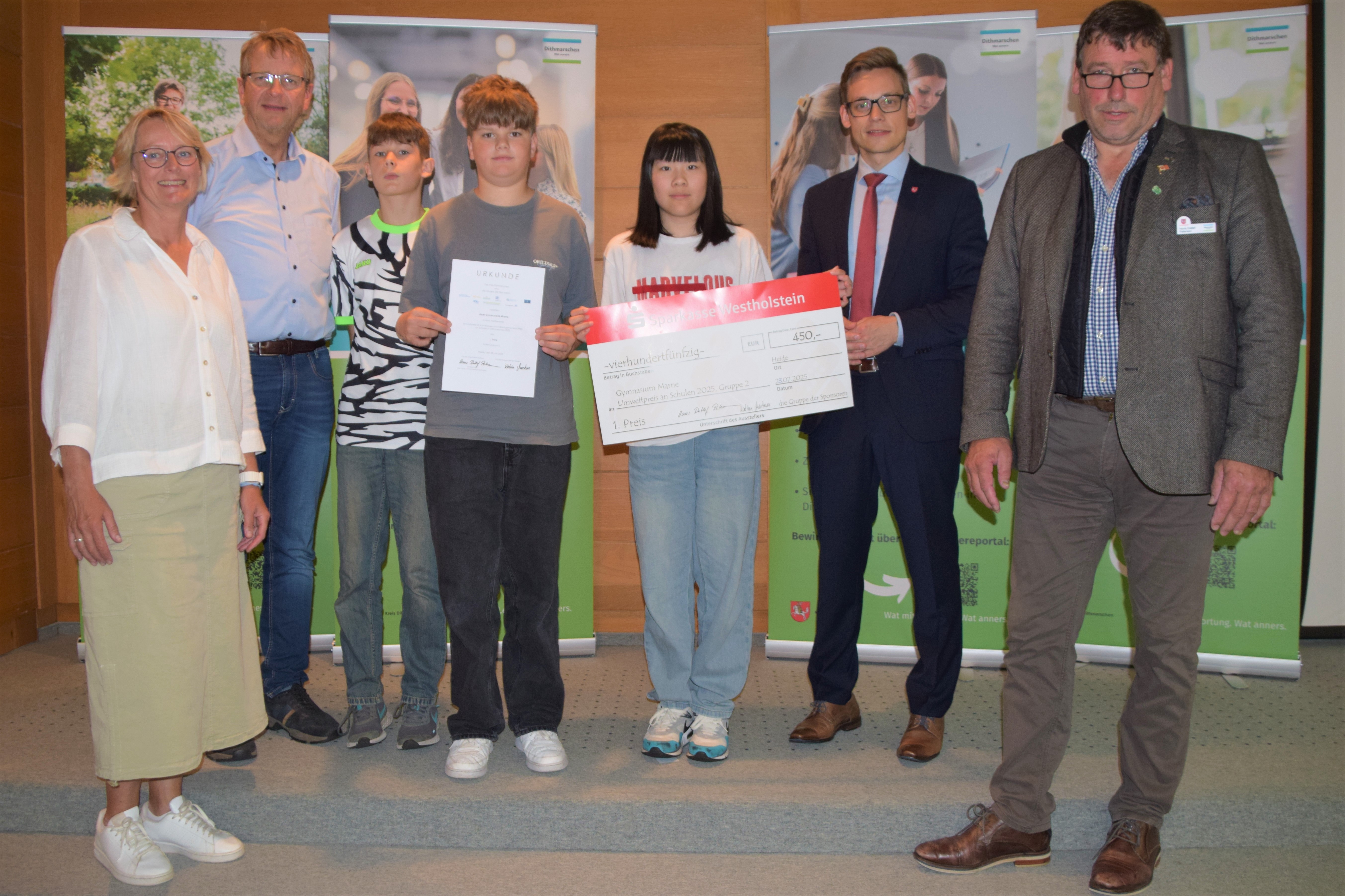 Beim diesjährigen Umweltpreis des Kreises Dithmarschen für Schulen konnten die Schülerinnen und Schüler des Nachhaltigkeitsteams für ihre Aktivitäten einen 1. Preis erzielen. Die Gruppe hatte u.a. die Automatisierung des Gewächshauses in Betrieb genommen, ein Hochbeet gebaut und Gemüsepflanzen in die Beete gesetzt. Beim Projekt lüttIng. wurden nachhaltige Mini-Akkus gebaut.